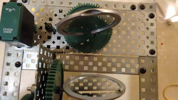Había colocado un espejo para cada eje de engranaje y puso unos cerca de 45 ángulos de grado. Utilizamos cinta a agregado los espejos para nuestro prototipo.