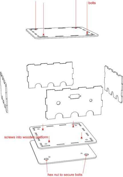 Si lo desea, puede empaquetar los componentes electrónicos en una caja. Adjunto un archivo pdf para un diseño de caja que puede laser corte de una hoja de acrílico de 0,12". Recuerde aislar ninguna parte metálica cerca de la electrónica para reducir al mínimo la posibilidad de cortocircuitos.