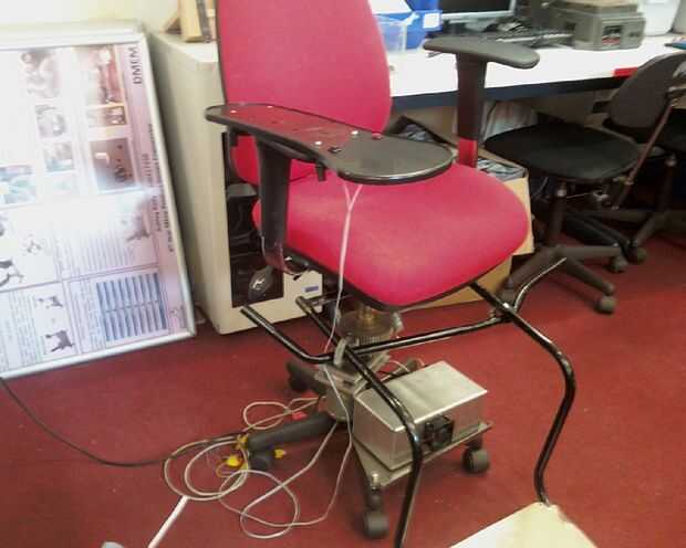 Robot y Th silla girar simultáneamente para localizar sonidos y ayudar a mejorar la inmersión. Estaba tratando de recrear que la silla era el robot y estaban sentados dentro de la cabeza.