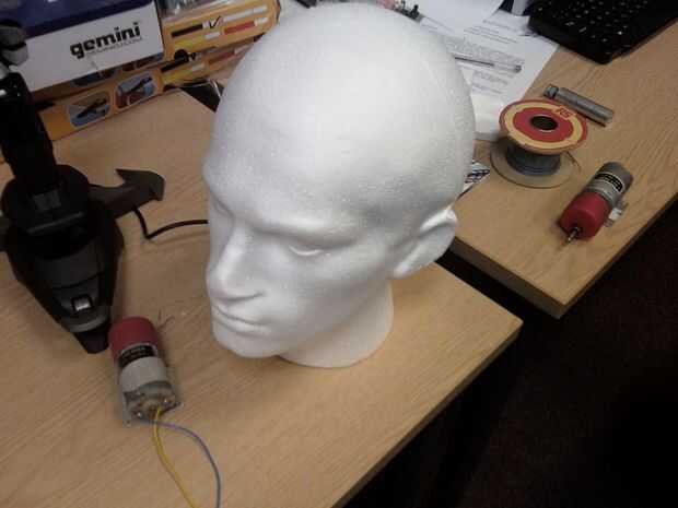 • Cabeza de maniquí (utiliza una cabeza de poliestireno). Usted quiere asegurarse de que tiene una cabeza de dummy que es las mismas proporciones de una cabeza humana ya que esto ayudará el robot replicar cómo oyes sonidos.