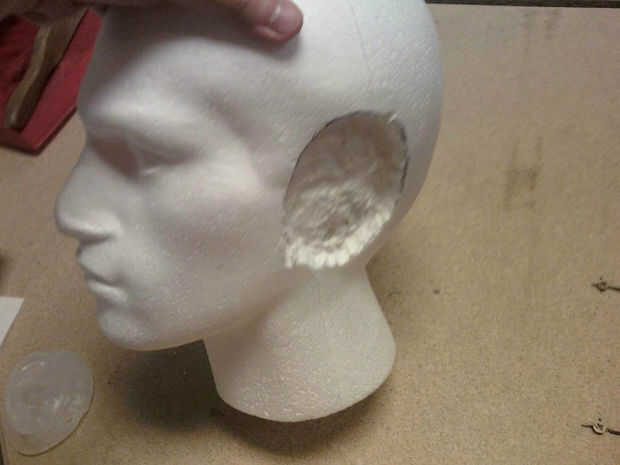 Lo primero que tienes que hacer es quitar las orejas que están en la cabeza de maniquí. Que utiliza un cortador de alambre para quitar las orejas y luego trazó un esbozo de cada oreja en el lado de la cabeza.