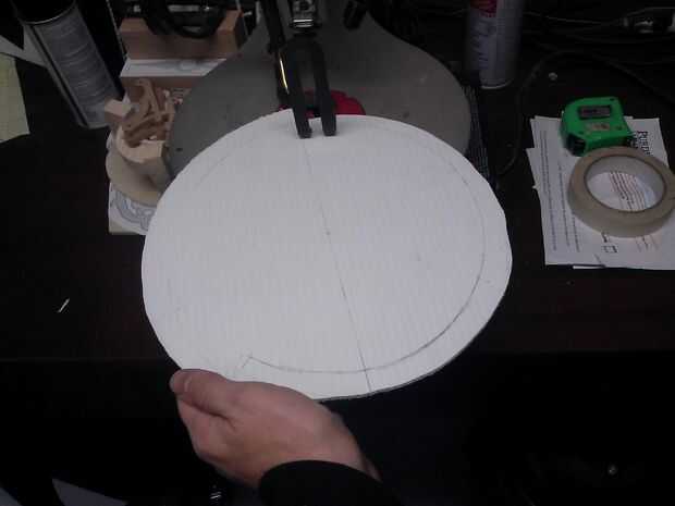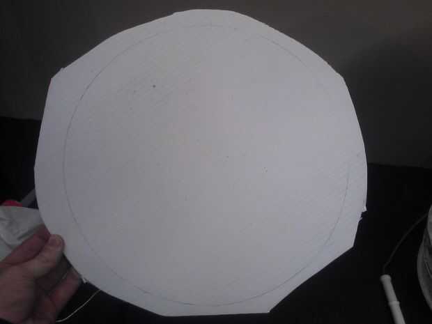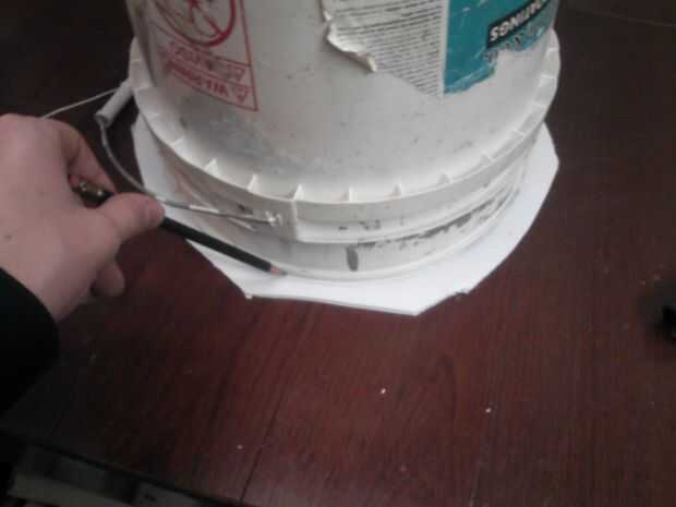 Traza un círculo en su pieza plana, calcular el diámetro de su contenedor unas pocas pulgadas por debajo de la abertura.