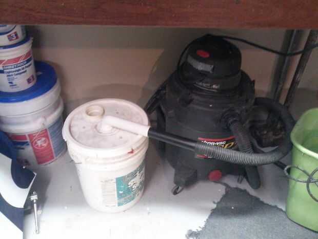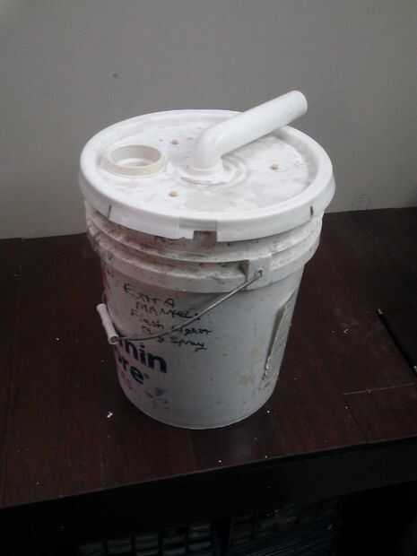 Si se utiliza pegamento, dejar secar primero. Si usted ha utilizado cinta adhesiva para conductos, siga adelante. Poner el conjunto superior en su recipiente y gancho para arriba. La tapa debe tener un ajuste hermético o pierde succión.
