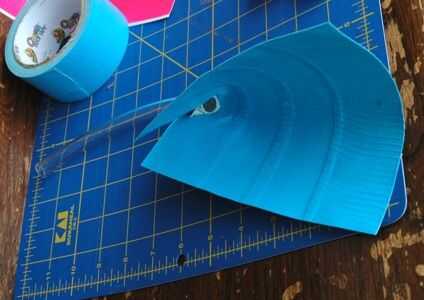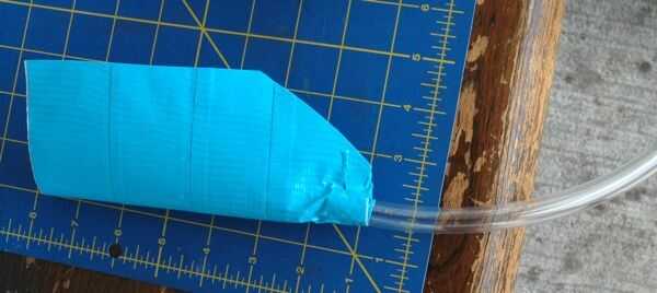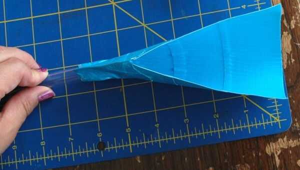Doblar la hoja por la mitad. Coloque el tubo dentro de la hoja para que la cinta se pega a las paredes. Corte en una diagonal de hasta de justo sobre el tubo un par de pulgadas de tubo.