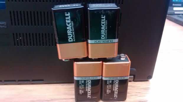 Utilizando tiras adhesivas eléctricas, enlace de cada juego de baterías, debe tener dos grupos totalmente interconectados de cuatro y ocho. Recuerda, conectar las baterías de 9 voltios utilizando sus apéndices conectables asemejándose a la toma de corriente (véase visual).