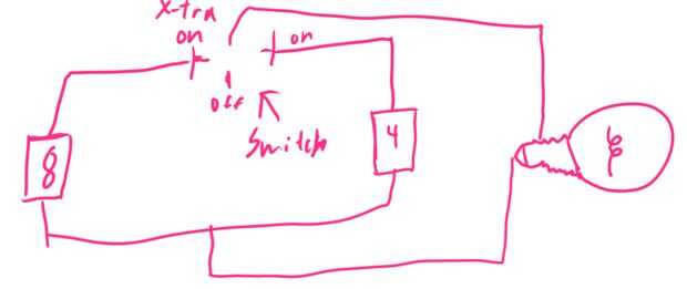 Conecte un cable al primer ajuste "on" del interruptor y otro cable al otro "en" configuración. Estos dos cables van a cada grupo de la batería. De cada batería de cluster es otro cable, y estos dos cables saliendo de los conglomerados se reúnen en el centro. Desde aquí, otro cable se conecta desde este cruce a la parte inferior del bulbo. El tercer cable del interruptor va al lado de broca metálica de la bombilla. Dan, he adjuntado un esquema simple y fácil interpretado para demostrar este fenómeno.