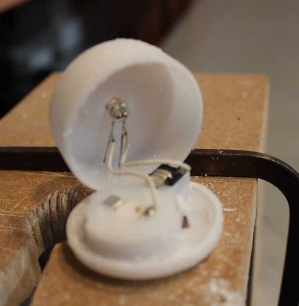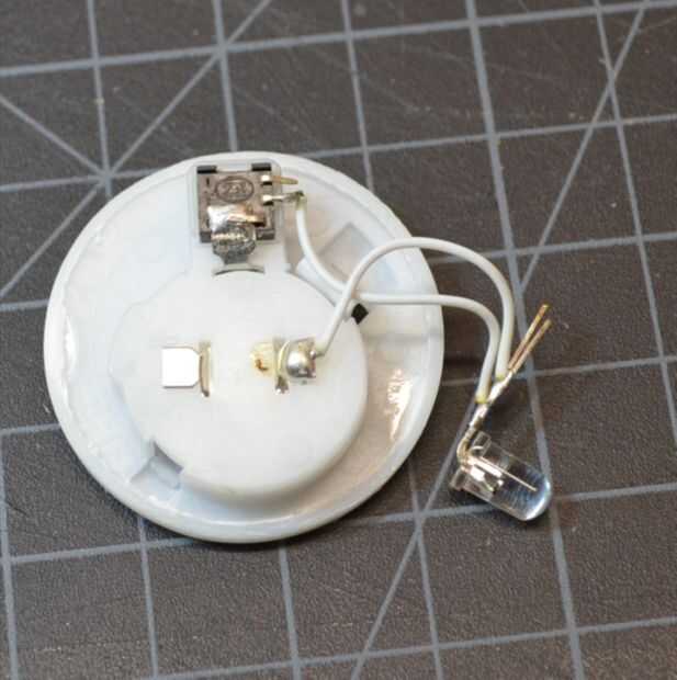 -Prueba montar otra vez, entonces quitar las cubiertas apagado el dispositivo de sonido y sacar espuma adicional para permitir apoyar piezas a añadir a los componentes de botón. Usando pegamento de madera, coloque un pedazo pequeño de 1/8" tira de madera detrás del botón y deje que se seque. Cuando esté seco, botón de pegamento en su lugar usando pegamento caliente como hay no mañana - sólo asegúrese de que no cubre las piezas de trabajo del botón. Probarlo y asegurarse de que todavía funciona y no "da" al presionar.