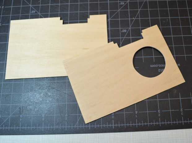 -Trazar el contorno del dispositivo de sonido base en ambos lados, transferir patrones a pedazos de madera y cortar (mina son basswood 1/16").