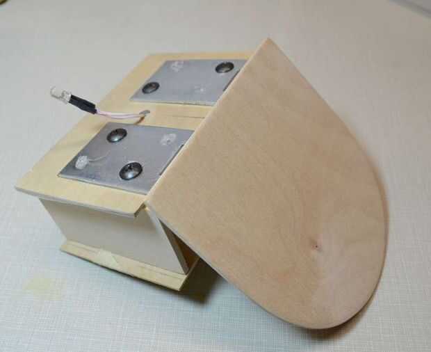 -Medir en 1/4" de los lados de la cubierta superior (uno con la luz del té conectado) y marque una línea a lo ancho - esta es la zona que quedará claro para que el sandwich a la base de nuestro dispositivo terminado.
