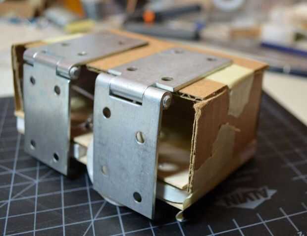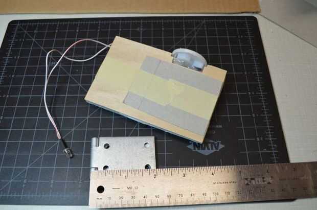 -medir la profundidad de la bisagra. Usando esto como una medida de base, construir una falsa caja de cartón (comienzo con las partes altas como la profundidad de la bisagra menos mitad de la anchura de su emparedado de componente, como tan amplia como los lados de la cubierta de componente "top sandwich") ajustar según sea necesario para conseguir las bisagras en una posición donde activan botones al presionar.