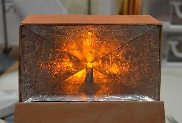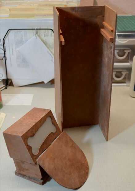 -Encolar la pieza frontal sobre la caja de luz, toque cualquier pintura si es necesario. Fijar el conjunto a un lado a secar mientras se crea la base.