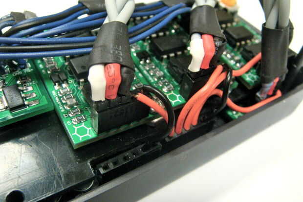 Cada sensor muscular necesita un electrodo de referencia para conectarse a la clavija Ref. Para nuestro ejemplo, vamos a colocar en la parte posterior del antebrazo cerca del codo. Los electrodos de referencia deben colocarse en zonas eléctricamente hilo neutras del cuerpo como la zona ósea por el codo.