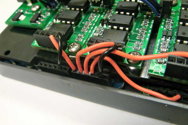 Utilizando el cable de núcleo sólido puente de hilo, conecte el pin Vout de cada sensor de músculo a los pines analógicos en su Arduino.