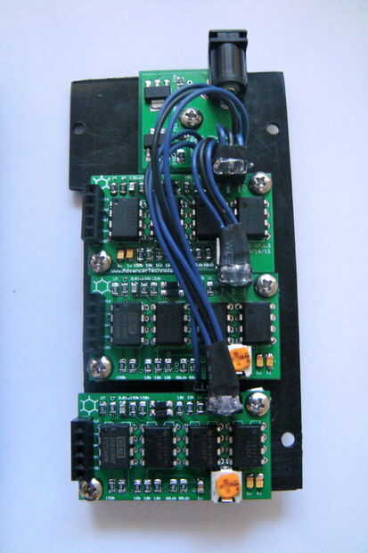 Agarra tres de sus sensores y el tablero de la fuente de poder y poner un tornillo en cada orificio de montaje. Enrosque una tuerca en cada tornillo pero dejarlo un poco flojo. Estas tuercas se utilizarán como separadores.