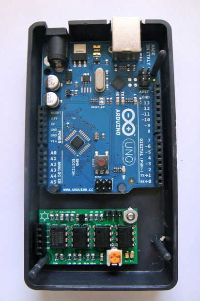 Asegúrese de que puede encajar la cubierta femenina a través de la brecha entre los sensores y abajo en un corte rectangular y en las cabeceras hombres del sensor de abajo. Si el espacio es apretado, quitar uno de los mejores sensores y uno de sus agujeros de montaje en la plataforma de arena hasta que la brecha es bastante amplia.