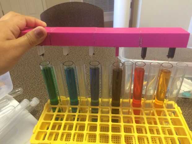 3. Voltee la base y colocar sobre los tubos de ensayo hasta una pequeña muestra de cada tubo de ensayo es aspirada en cada observador.