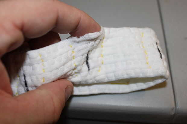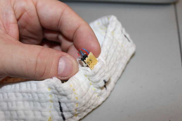 2 - coser 5 bolsitas en la diadema, lo suficientemente grande para recibir los módulos de Motor. Estos deben colocarse en los lugares marcados.