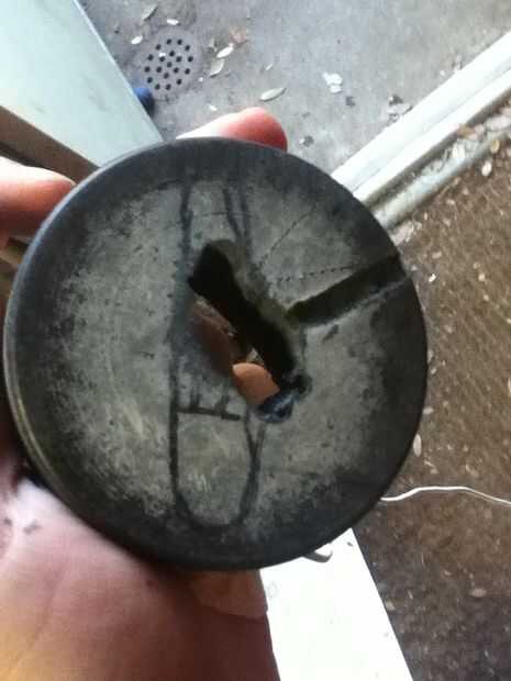 Ahora solo limpiar su agujero un poco más y luego empezar a cortar la ranura para que quepa el teléfono a través de. ! NO HACERLO TODO A TRAVÉS DEL DUENDE MALICIOSO DE LA RANURA! Casi 1/4 de pulgada es probablemente bueno. Esta ranura debe ser lo suficientemente grande como para deslizar su teléfono fácilmente, no te preocupes si el teléfono no se queda para arriba. El cargador lo apoyará cuando añadimos. También agregar un camino ligero para el cable del disco para ir a través para no hacer todo inestable.