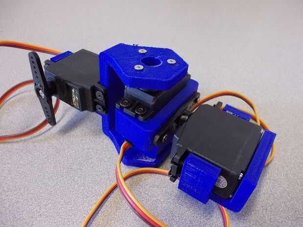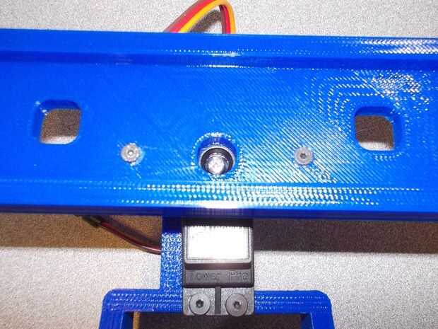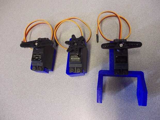 Hay 3 servomotores a 4 piezas impresas 3D. Esto puede hacerse en los siguientes pasos: