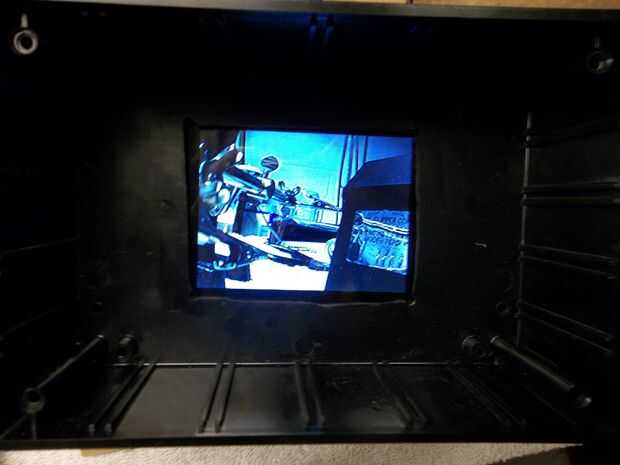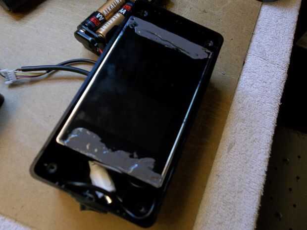 En cuanto a la pantalla, rellena en la casilla del centro después de todo y centrado en lo que quería mostrar a través de las más grandes delante de él. Después de que yo estaba contento con la alineación, me había pelado de protector de pantalla de plástico y cementó la pantalla a la cara de la caja más grande alrededor del agujero cuadrado. Quería que duda cabe correctamente, así que había enroscada la caja mientras que el epoxi curado para un ajuste garantizado.
