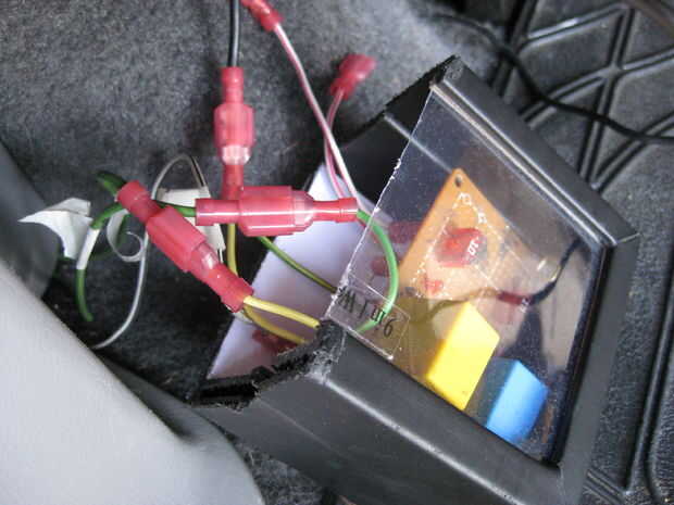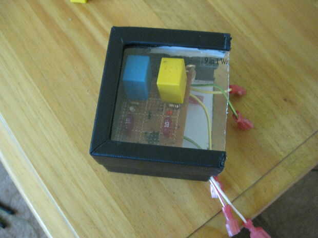 pensé que esta cosa es un poco frágil necesita cierta protección contra cualquier cosa que venga en contacto con ella mientras su conectado. Tenía esta vieja caja de joyería no se usa para la corté por la mitad el tamaño del deivce dejando la parte de la ventana y puerta sigue Unido y opertate. He montado en el tablero con un taco de madera de un pincel de espuma y atornilladas en el tablero y la caja. Voy a tener que averiguar algo que cubra el lado abierto más tarde. Con lo bonito y firme y los cables accesibles su listo para montar y disfrutar.