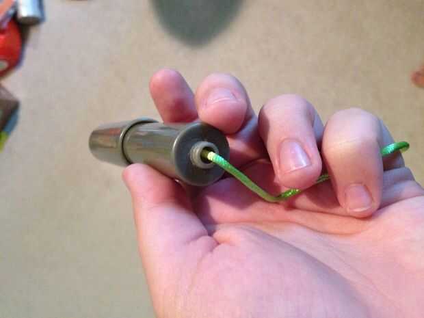 cortar un trozo de la cuerda de nylon de aproximadamente 1 pie de largo