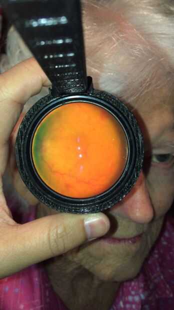 Una lente de condensación 20 dioptrías (50mm de diámetro) - Estos son los lentes de condensación típico utilizados en Oftalmología. Puede ser prestados desde su propia clínica de ojo local, o usted puede comprar de Volk.