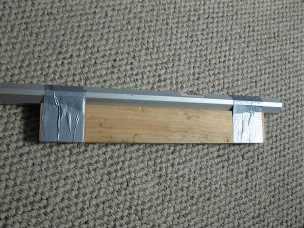 Cinta aislante de uso para fijar el bloque de madera para el polo. Fije el bloque de madera aproximadamente 2 pulgadas del extremo del poste y fije el bloque con la cinta en la parte superior e inferior. Asegúrese de que el bloque es resistente y es poco probable seguir.