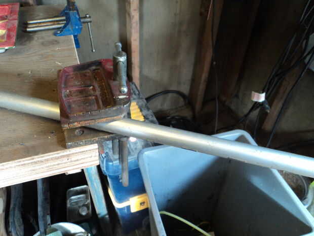 - En este punto puede Agregar si lo desea los agujeros de la PEEP de tolvas. Sólo tiraron en un tornillo de banco y utilizar mi taladro. Los agujeros están espaciados aproximadamente 1 el 1/2" aparte, esto es horrible admitir pero no medirlo, solo perforó la mano libre de agujeros. Yo soy mi propio peor enemigo a veces...