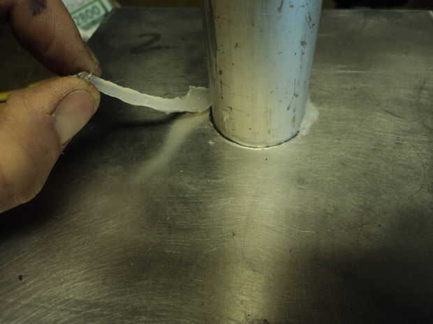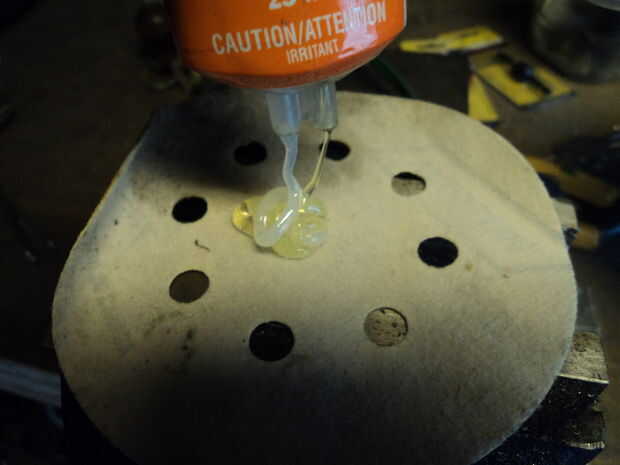 - Dale la vuelta y ahora Unte en algunos epoxy, asegúrese de que donde va a aplicar el epoxi que han rugosa arriba el metal para dar el pegamento algunos dientes para agarrar. Permita que para curar.