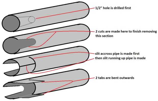 - En el reverso cortar una T en la tubería, cuando se despliegan el metal debe ser suficientemente grande para que la galleta se deslice fácilmente a través. -Ver fotos