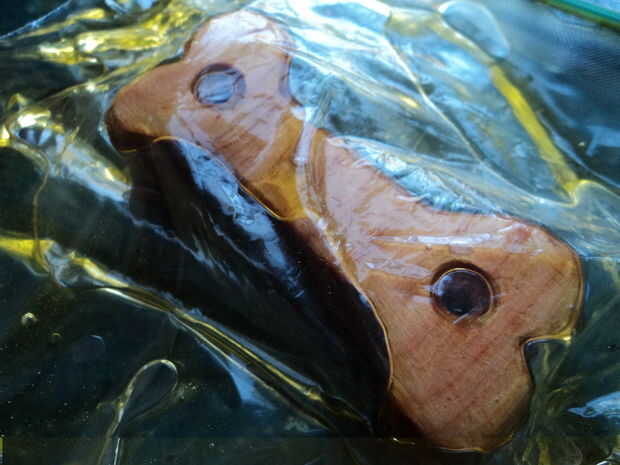 3. Quería un poco más oscuro así que decidí a manchar un poco.  Algo entonces utilice algunos tóxicos mancha utilicé un viejo truco, inmersión en aceite de oliva.  Sólo usé una bolsa zip lock con un poco de aceite en ella, añadir el hueso y en masaje.