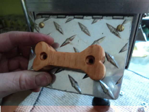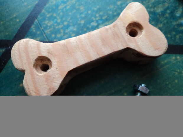 1. Primero dibuja una forma de hueso, o tal vez una de la pata en algo de madera.  Realmente no importa la forma, algo agradable a la vista.  Por supuesto se podría acabar con la placa metálica todos junta y la paleta entera de madera, su hasta usted.