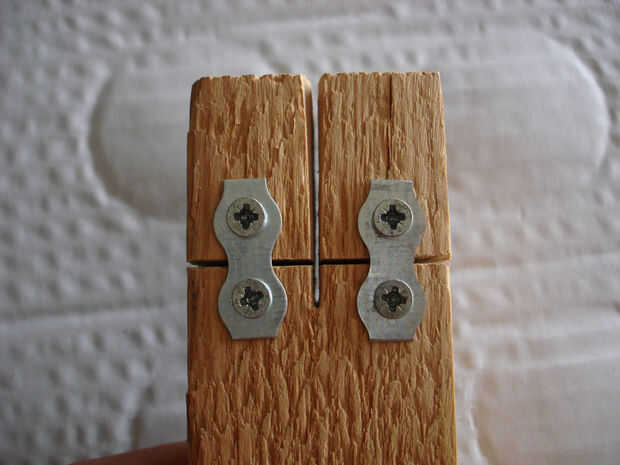 Continúe instalando las metálicas piezas de cinta de fleje y sujetar la madera con los tornillos. Su propósito es mantener la cuchilla en su lugar.