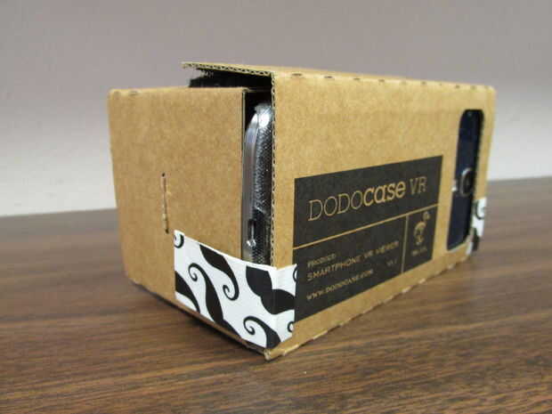 He estado muy impresionado con el visor de realidad Virtual de Smartphone de DoDoCase VR. Hemos tenido un buen rato mostrando a nuestros miembros aquí en la biblioteca. Pero normalmente estoy usando mi teléfono para mostrar a la gente, y una o dos veces el teléfono se ha deslizado hacia el lado del espectador cuando alguien es girándolo hacia los lados para salir de una aplicación. Así pues, puse un rápido dispositivo Securer utilizando algunas de las fuentes que teníamos en la biblioteca.