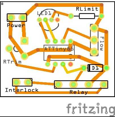 Para ayudar con el diagnostico de un LED RGB está equipado, y para la configuración de un bote pequeño de ajuste se utiliza para fijar el caudal de umbral. El relé es un relé de láminas pequeñas donde la corriente de la bobina es suficientemente baja como para ser conducido directamente mi el microcontrolador.