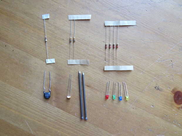 2 x 10 K + 1 x 10 + 4 x 220 ohm resistencias - normalmente atribuyo las resistencias en el otro extremo a la placa para ahorrar espacio. pero puede mantenerlos en el dispositivo, así si desea intentar una versión diferente, aunque no sé cómo mantendrá las resistencias con el tiempo.