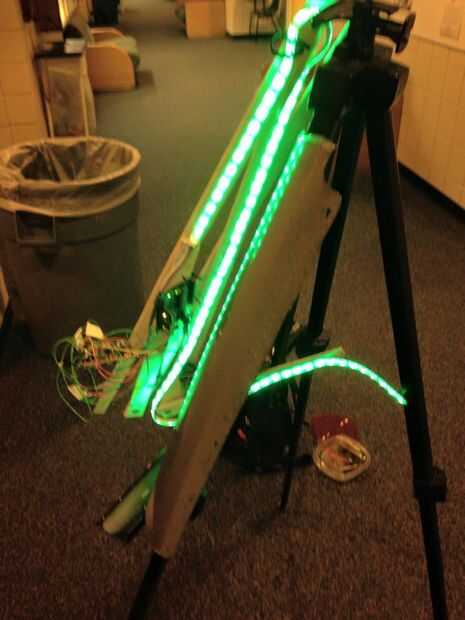 Como último paso, tienes todas las piezas, tienes todo el código, ahora usted está listo para poner todo junto. El sensor de distancia debe al final de la estructura, con el concepto de movimiento y la distancia de activación, así que cuando los pliegues de la estructura hacia fuera y el punto consigue más cercano a un objeto, el color cambia de verde al rojo, de hecho pare.