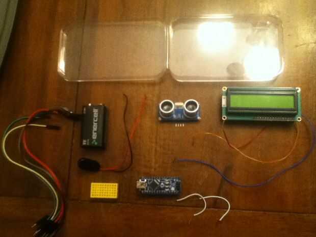 este dispositivo de bolsillo está diseñado para ser utilizado como una herramienta de medición cuando no tiene una cinta métrica o con uno sería impráctico o imposible. Utiliza un sensor ultrasónico y un Arduino Nano para determinar distancia y mostrar en una pantalla LCD. Este modelo está diseñado para poder abrir y apagar cuando está cerrado. Estando leyendo la pantalla del LCD el sensor en el otro lado del aparato, así que puede señalar el dispositivo en el destino como una cámara. También, hay algunas situaciones donde opté por usar un método de construcción menos que ideal (cinta, etc.) para permitir que una persona este edificio poder desmontar todo y volver a utilizar el caso del iPod.