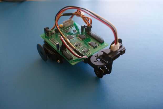Utiliza un sensor de distancia y dos motores servo de rotación continua. El controlador de Servo inteligente se utiliza para crear un controlador PID. Cuando el robot es demasiado cierre se mueve hacia atrás y cuando está muy lejos viene más cerca.