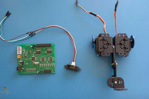Una vez que la plataforma de fijar el sensor de distancia y controlador de servo inteligente al robot.
