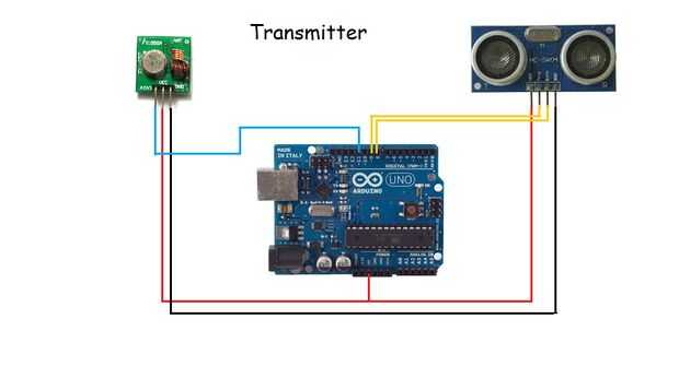 Este paso requiere un arduino UNO, transmisor de 433 mhz, telémetro ultrasónico, un protoboard y algunos cables de puente masculino. Para hacer el transmisor sólo tienes que seguir los esquemas anteriores.