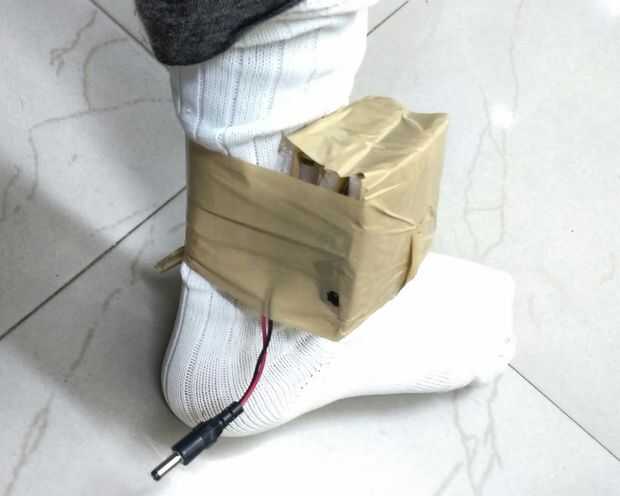 Para evitar daño, rellenos alguna espuma de poliestireno entre mi tobillo y batería titular como se puede ver en las imágenes adjuntas. Para apilar hasta electrónica y asegurarse de que hay no pocos entre ellos, otra vez usé poliestireno. Te Consejo llevar calcetín mientras recolectaba datos.