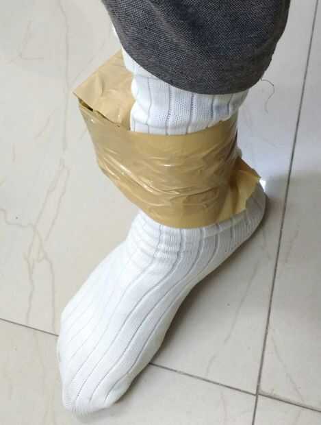 Finalmente envuelto todo junto con una cinta como se muestra en imágenes y había pegado a mi tobillo. Por favor anote la orientación de su acelerómetro, para que cada vez que retire y pegarlo otra vez orientación del acelerómetro sigue siendo el mismo. Me refiero a que podemos desarrollar un algoritmo que se encarga de la orientación al azar pero de principio sugiero mantener la orientación fijada.