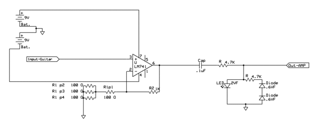 Nota: El segundo esquema es cómo conectar los switches a la amp op, así que todavía tienes que usar las resistencias desde el primer esquema. Hice dos esquemas diferentes, porque sabía que le quieren utilizar su propio diseño de interruptor. De esta manera pueden ver cómo funcionan los interruptores.