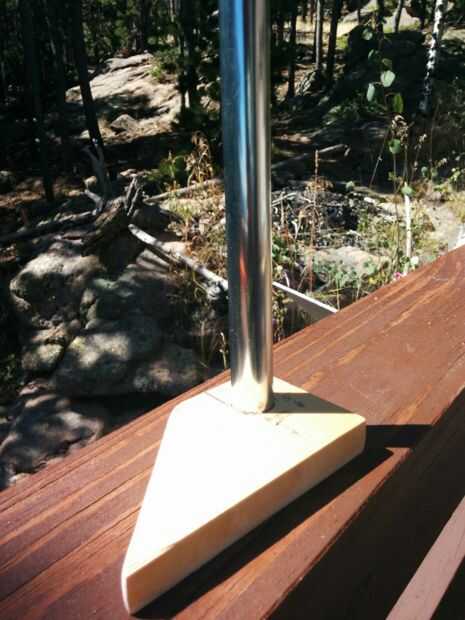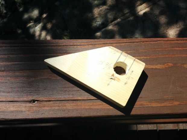 Taladre un agujero piloto. Usa 7/32" para esto, luego se volvió loca con la espada 7/8 bit para tallar hacia fuera el agujero más grande. Puramente por casualidad el poste que había encontrado era sólo una smidgeonette en 7/8" de diámetro así que puede ser puesta en posición con facilidad.