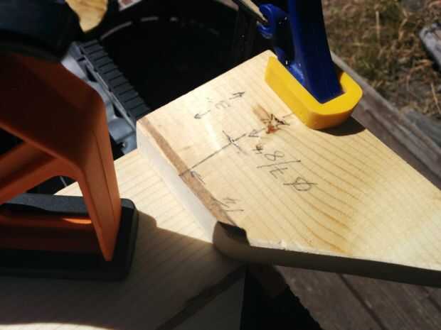 Sujete la pieza de trabajo firmemente en su lugar. Pino tiende a ser un poco en el lado splintery / splitty, siempre use un pedazo de chatarra para que lo apoyen durante la perforación o corte.