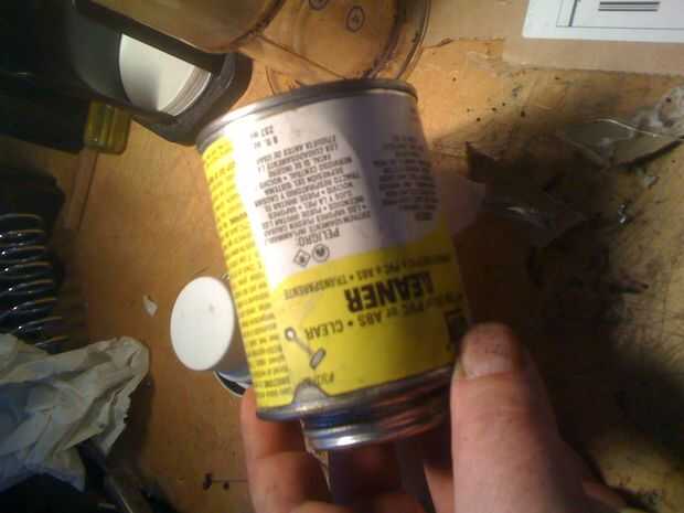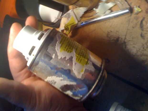 Otras can, el ex ABS limpiador, fue limpiar, y pegué un altavoz que era de un viejo iMac a la parte superior. Mi elección es E6000. Es apestoso, pero mantiene juntos todo tipo de material. No tengo una foto de ella, pero luego cortado y pegado algunos cartulina alrededor de la lata, para imitar el otro recipiente. El tornillo superior de la lata estuviera pegada a la parte posterior de lo Nerf. Ambos frascos se pueden quitar si es necesario.