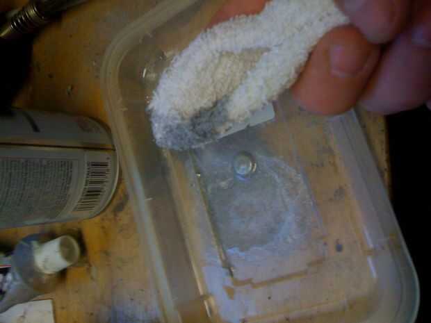 Lo primero que hice fue "rayar" para arriba.  Lo hice utilizando pintura en aerosol plata metálica, en una tapa de plástico que luego con un trapo de tela de toalla, llegué a todos los puntos altos, como haría en la vida real si esta cosa fue conseguir golpeada en un armario. Lo hago todo, todo el Nerf todo.