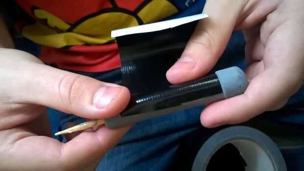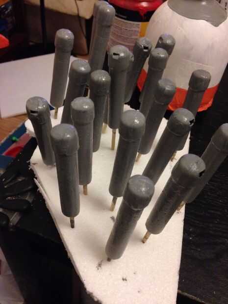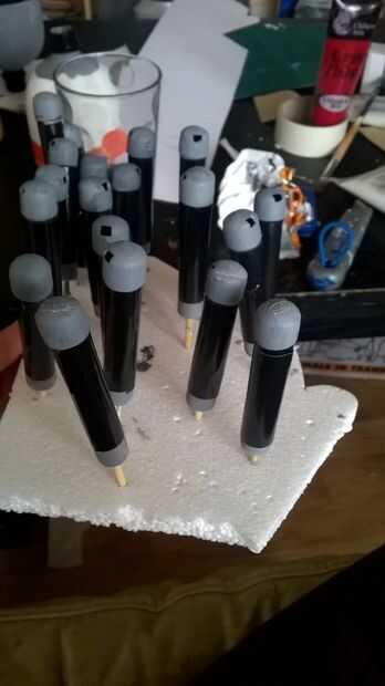 Pintar las balas gris o plata. Dejar secar y luego envolver la cinta negra (si no tienes cinta negra puede pintar estas piezas)